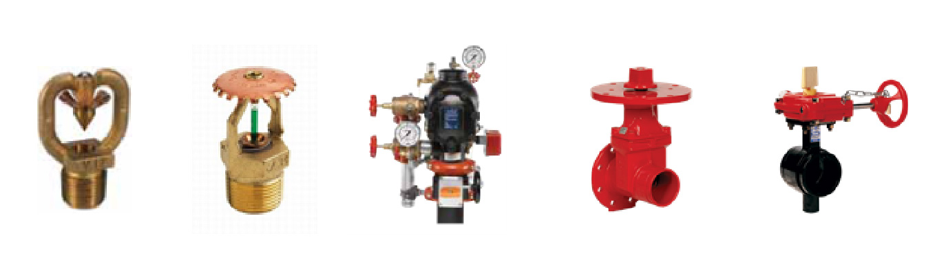 Desde rociadores automáticos, boquillas, pasando por válvulas de corte de compuerta OS&Y (bridadas o ranuradas, Postes Indicadores para enterrar o de pared, válvulas de mariposa ranuradas con interruptor indicador de posición; hasta puestos de control de rociadores, diluvio y pre-acción.
